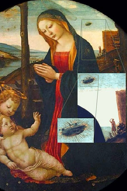 El trabajo del renacentista italiano Giovanni Bellini representa, a simple golpe de vista, a María mirando hacia abajo a dos niños. Sin embargo, en la pintura que cuelga en el Palazzo Vecchio en Florencia, Italia, también puede apreciarse a la derecha de la cabeza de María a un objeto volador en el fondo.